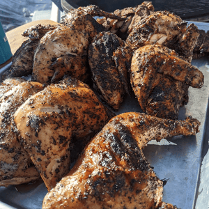 Taking them over 300 hours of grilling and smoking to find the perfect balance of rosemary, basil, and garlic. This three way spice party offers a sweet, sharp, and woodsy flavor that sings on the palate like The Kona Coffee harmonizes with the earthy notes of the herbs and adds a slight crunch. It's a symphony of succulent satisfaction! Kona Coffee also replicate tannins in wine, which allow greater flavor.